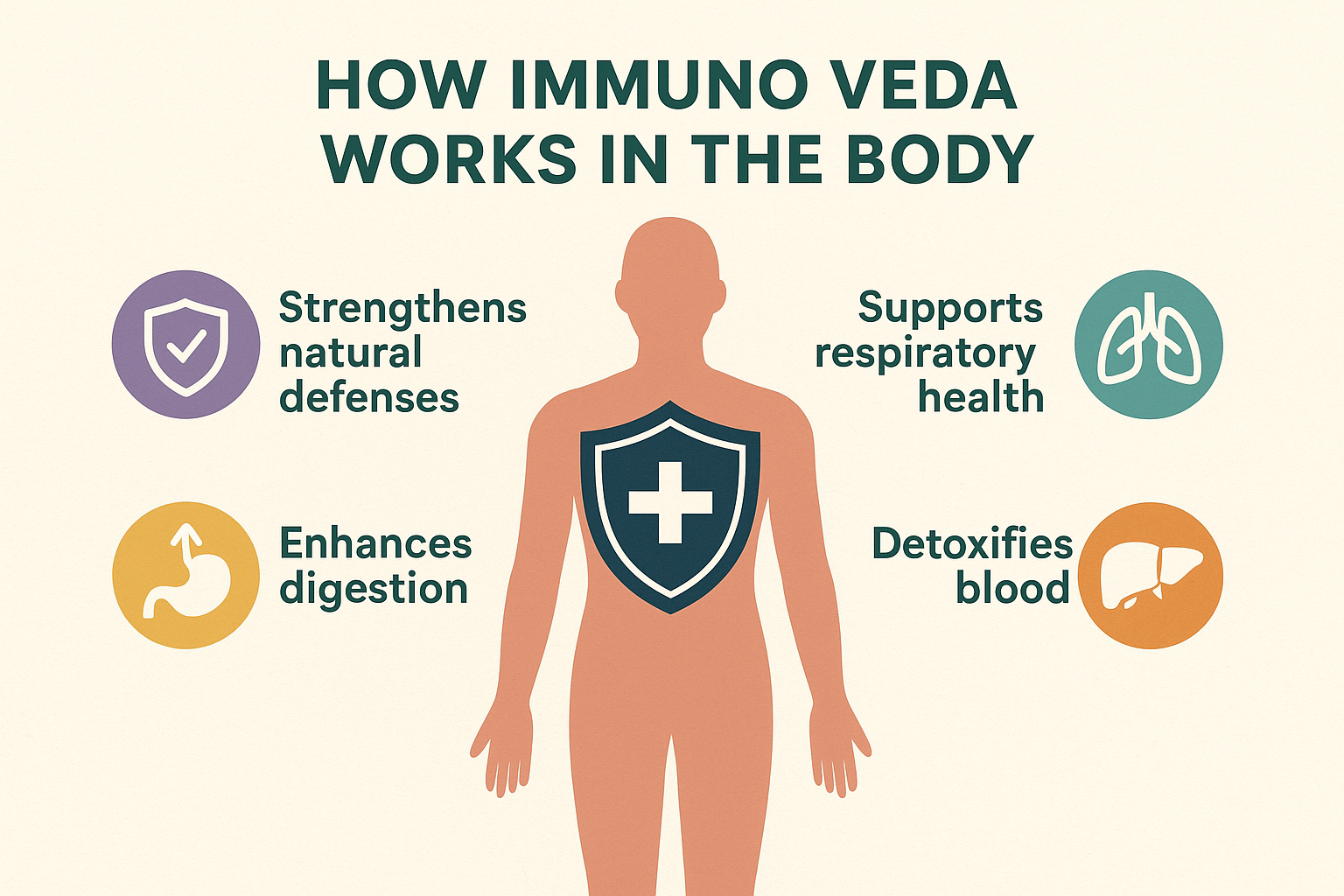 Revitalize your health with Ayurshved Immuno Veda, a scientifically formulated Ayurvedic powder enriched with time-tested herbs like Ashwagandha, Giloy, Amla, and Tulsi. This herbal powerhouse helps strengthen your immune system, purify your blood, enhance respiratory health, and boost your body’s natural defense against infections – all while keeping your mind calm and stress-free.